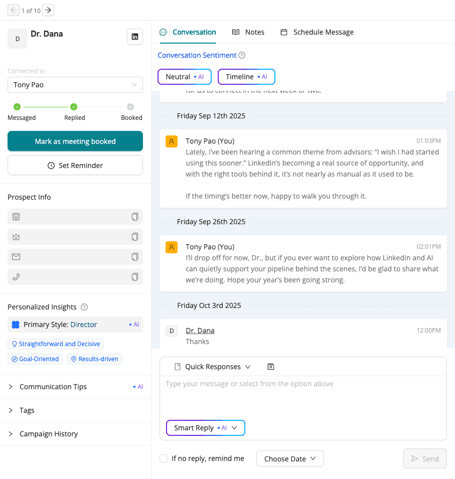 Personalized Insights AI: use this AI-powered analysis tool to tailor your approach at each stage of the sales funnel, ensuring your communication resonates with your prospect's preferred communication style.